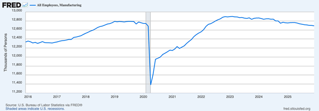 Manufacturing Employment Peaked in 2023 and Has Been in Decline Since