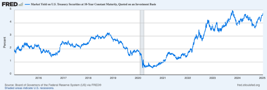 2 Fred Economic Data. January 15, 2025. https://fred.stlouisfed.org/seriesBeta/DGS10#