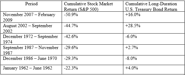 As readers can see in the table below, long-duration U.S. Treasury bonds have held up remarkably well – and almost always delivered positive performance – during the biggest equity market drawdowns. 2022 is arguably the exception, not the rule.