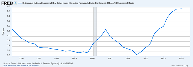 Commercial Real Estate Stress Moves into a New Phase – The long-running “extend and pretend” phase in commercial real estate appears to be ending. After years of loan extensions, lenders are increasingly forcing resolutions on troubled properties, especially in the office sector.