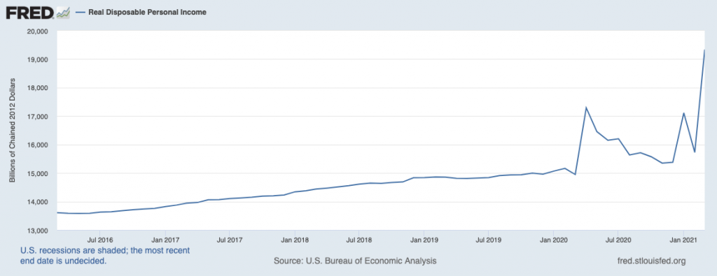 Currently, there is debate over whether expanded unemployment benefits are needed, and/or whether American households needed three rounds of government stimulus. I won’t wade into those debates here. Instead, I want to focus on the economic bottom line that the policies have helped produce. For better or worse: the U.S. consumer, in aggregate, is in a very strong financial position just as the economy is set to fully reopen. There may be a time to bet against the U.S. consumer, but I do not think it’s now.
