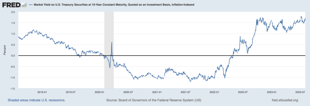 3 Fred Economic Data. August 4, 2023. https://fred.stlouisfed.org/series/DFII10
