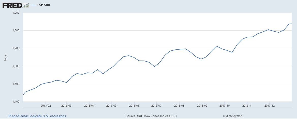 Historical data suggests that bearish investor sentiment is not a good indicator for bearish future returns. Earlier I noted that the last time investors were this bearish was back in April 2013, but take a look at what the S&P 500 did in that year: